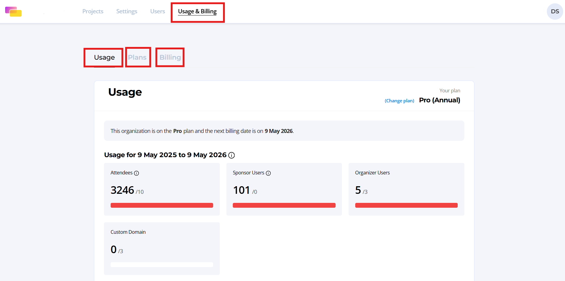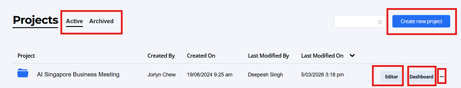 It helps to organise your past projects and stay focused on Active Projects. Click on each tab (Active, Archived) to view the list of events under each status.