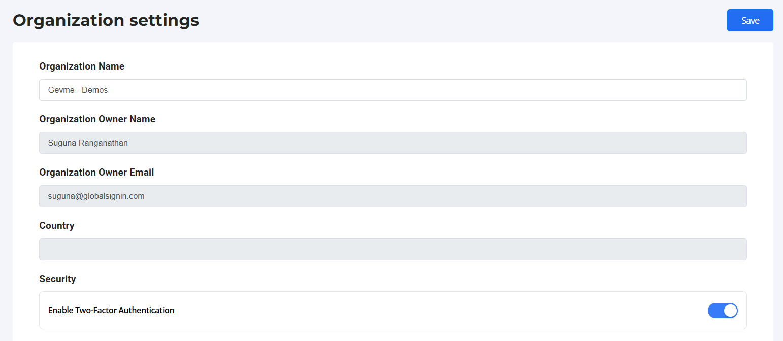Clicking on the dropdown, you see the list of all the organisations that you have access to and you can click on the one that you wish to work on.